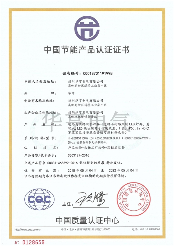 本公司生產(chǎn)設(shè)備完善,技術(shù)方面先進(jìn),檢測(cè)設(shè)備齊全,工藝操作精湛,質(zhì)量性能可靠。已被江蘇省揚(yáng)州市評(píng)為“重合同、守信用”企業(yè),被質(zhì)量技術(shù)監(jiān)督局評(píng)為“質(zhì)量信得過(guò)企業(yè)”,被江蘇省戰(zhàn)略委員會(huì)評(píng)為“省照明十佳”企業(yè),并且已經(jīng)通過(guò)ISO 9001質(zhì)量體系認(rèn)證、ISO 14001環(huán)境管理體系認(rèn)證、ISO45001職業(yè)健康管理體系認(rèn)證,榮獲中國(guó)質(zhì)量認(rèn)證多項(xiàng)認(rèn)證證書:及“CCC”認(rèn)證、中國(guó)節(jié)能產(chǎn)品認(rèn)證證書、太陽(yáng)能產(chǎn)品CQC認(rèn)證證書(金太陽(yáng)認(rèn)證)、中國(guó)環(huán)保產(chǎn)品Ⅱ型認(rèn)證證書,國(guó)際歐盟頒發(fā)的CE認(rèn)證,公司發(fā)展多年通過(guò)自主創(chuàng)新榮獲照明行業(yè)多項(xiàng)發(fā)明新型,具有照明工程國(guó)家“雙甲”資質(zhì),城市及道路照明工程ZY承包壹級(jí)、照明工程設(shè)計(jì)專項(xiàng)甲。